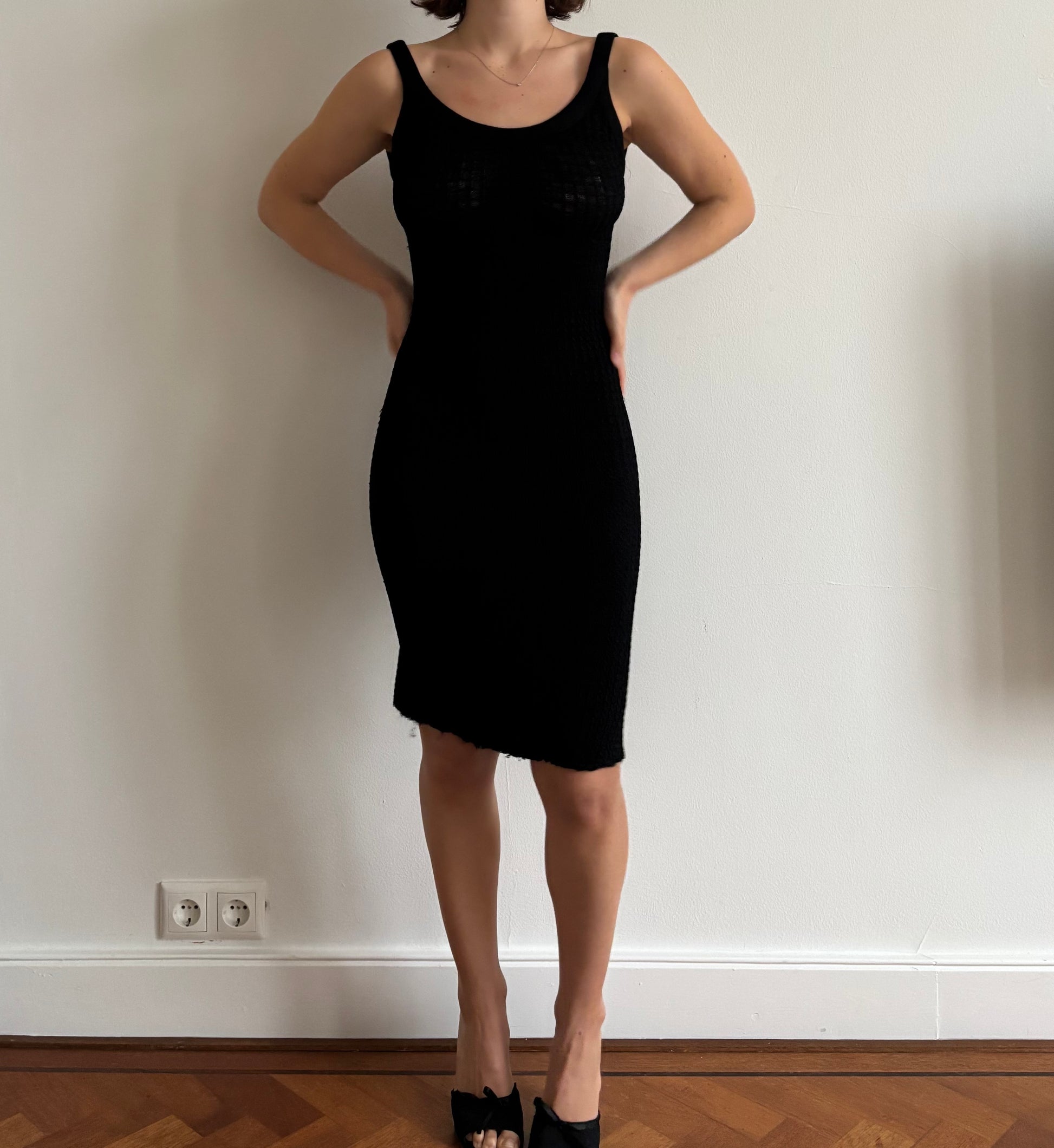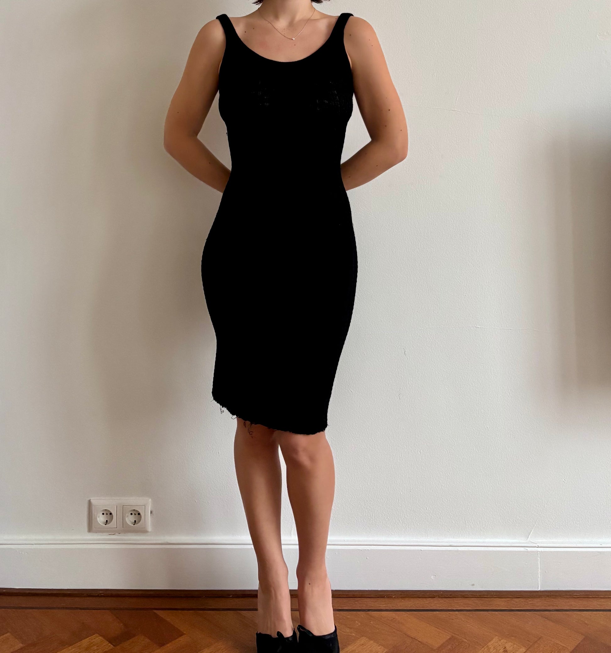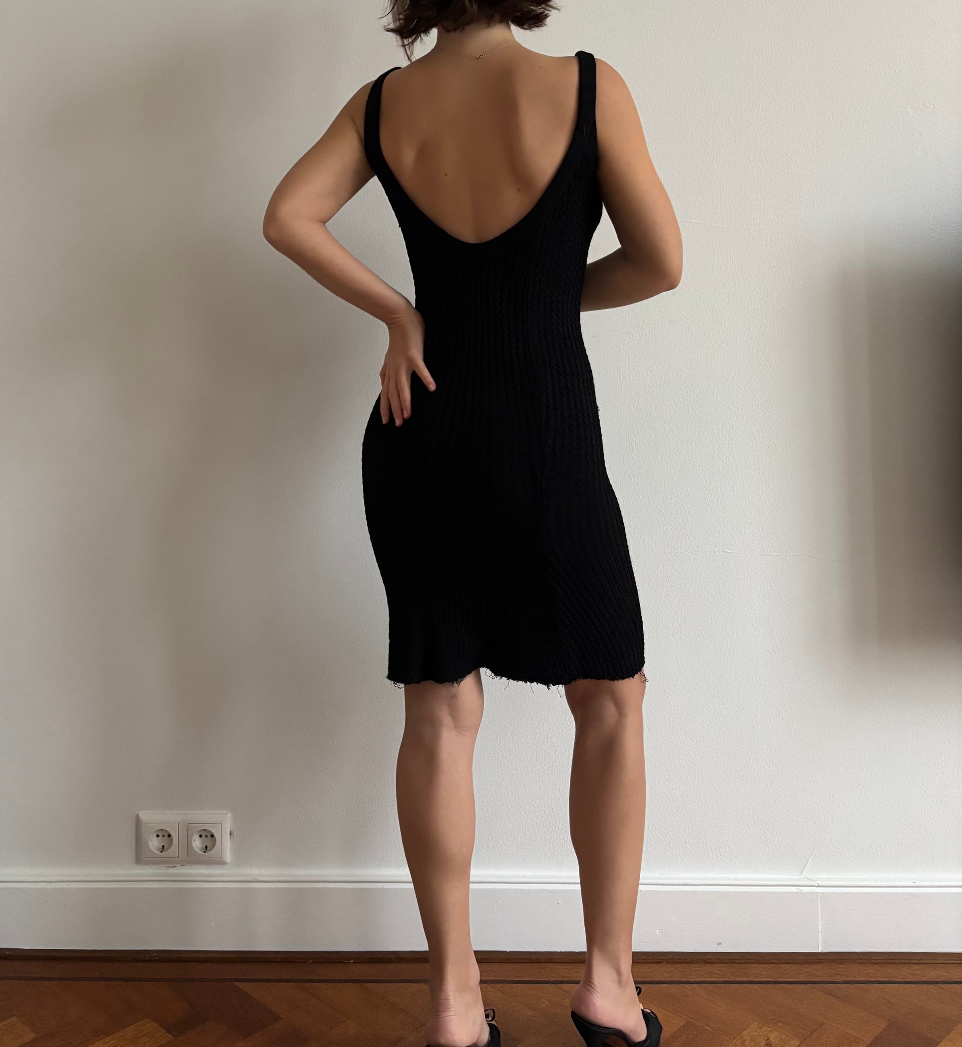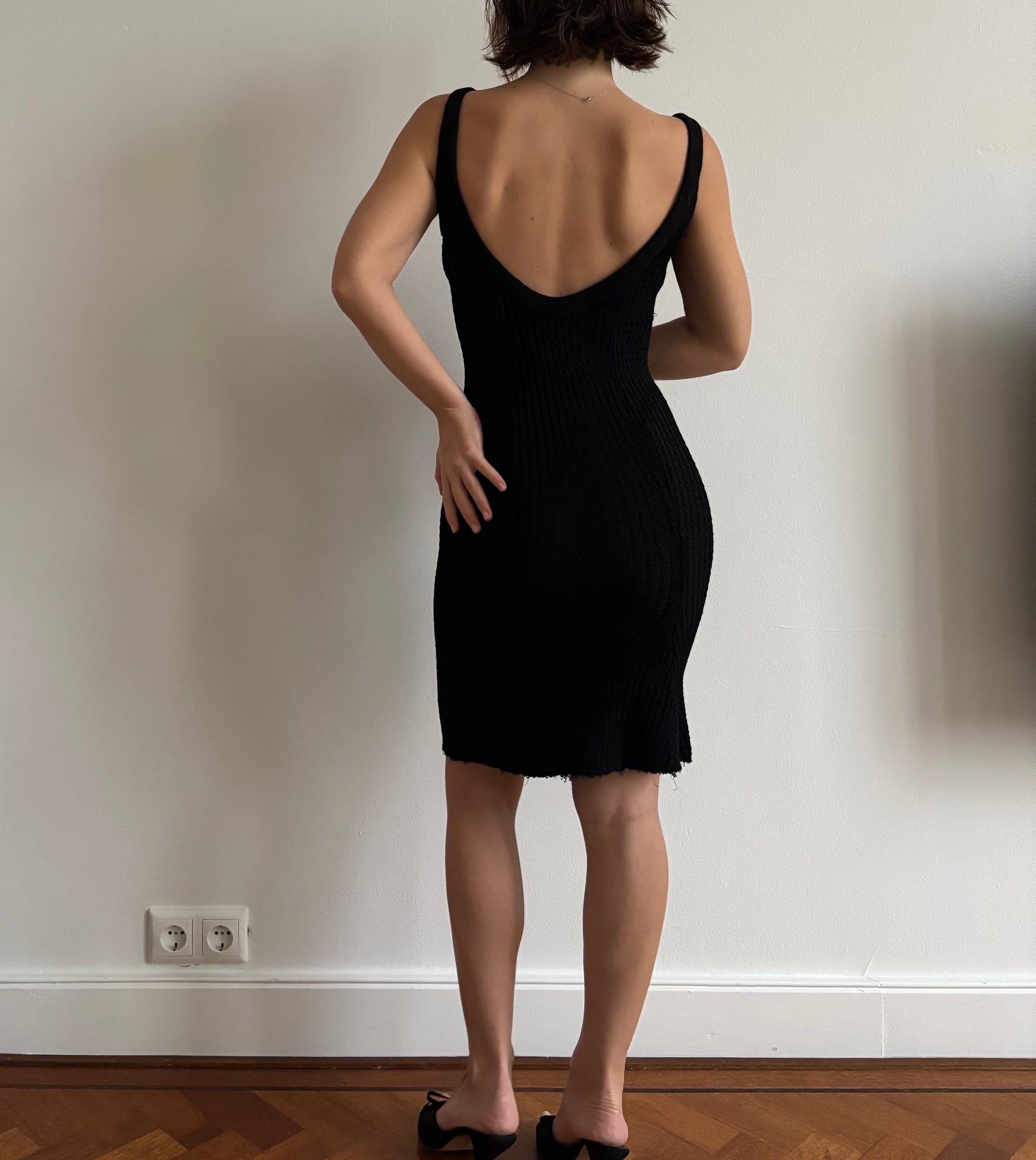 Stunning FW1993 Gianni Versace Couture knit dress with a backless dress which was seen in the longer version on the runway.