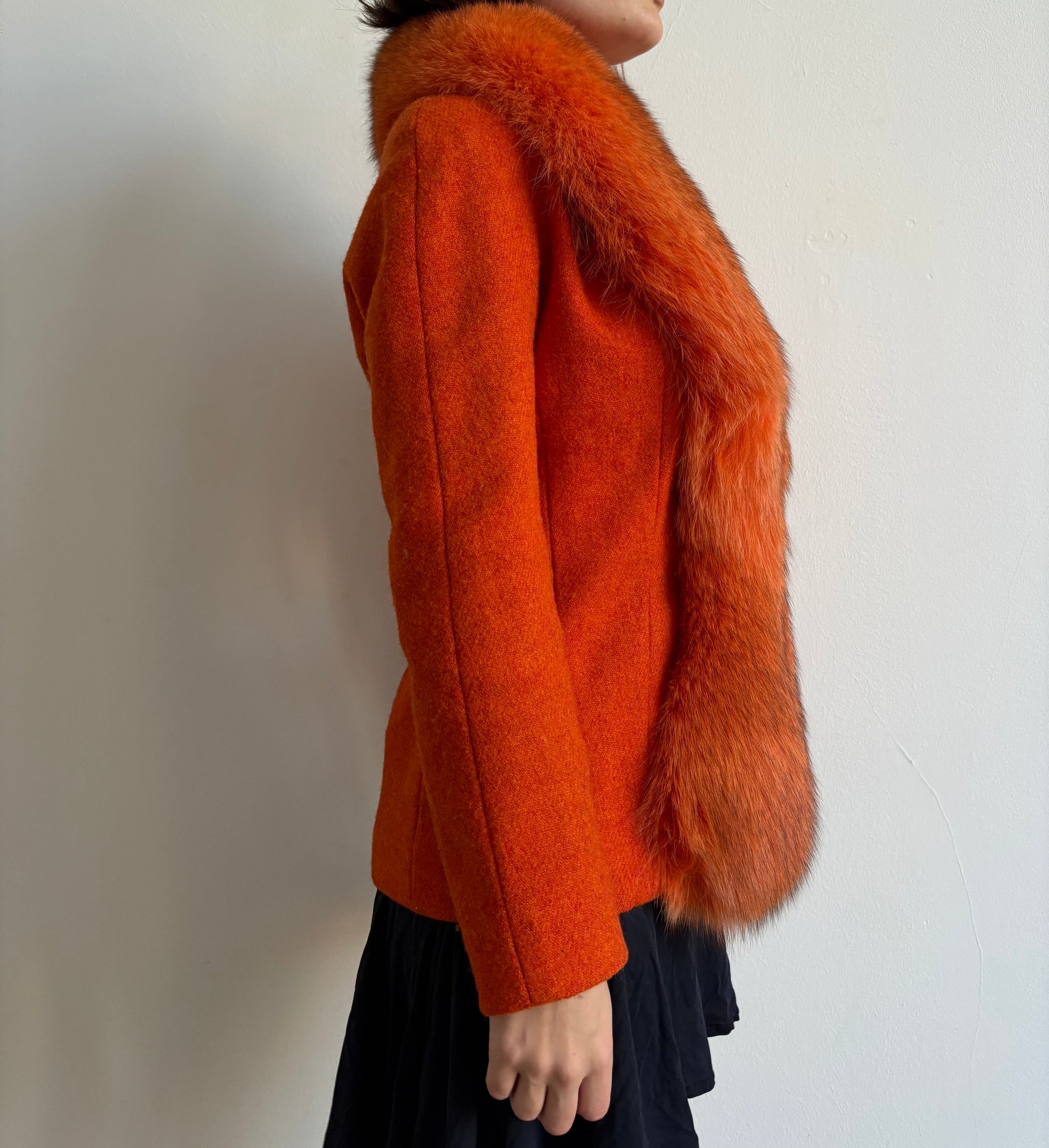 The most special and iconic Dior by Galliano fox fur jacket seen on the F/W 1998 runway in pink. This archival piece hooks at the front and features the most amazing dramatic fur. The orange is a gorgeous burnt orange. A piece you only will come across once!