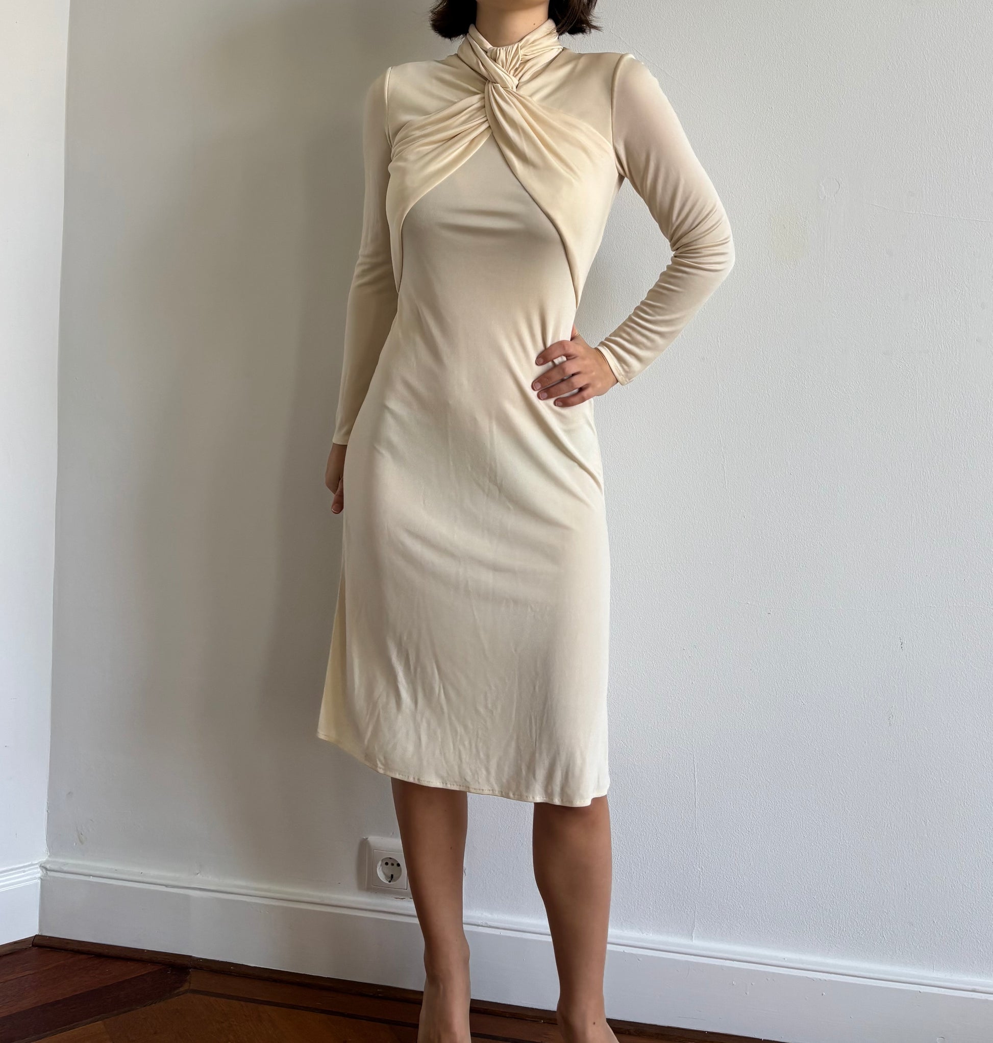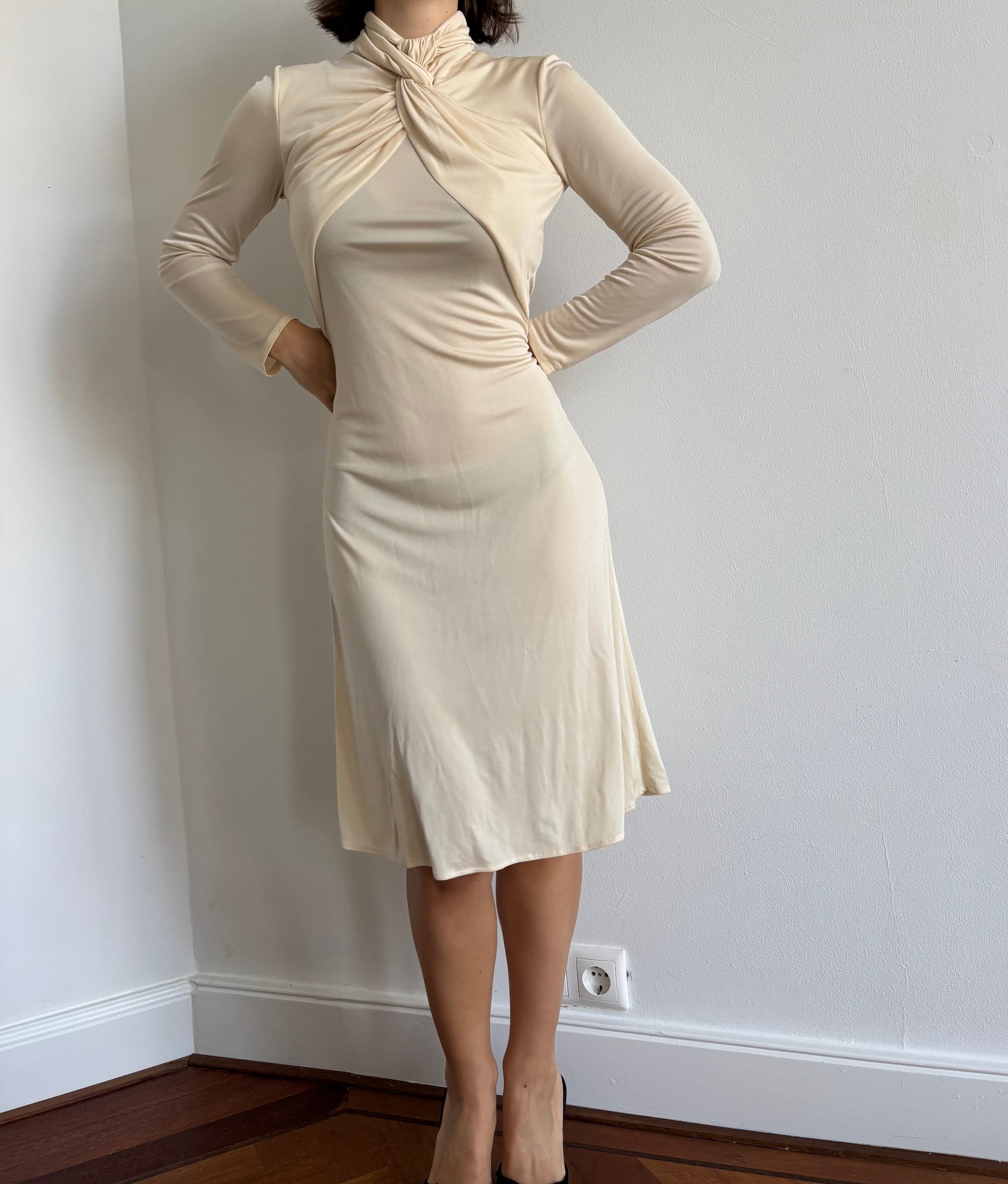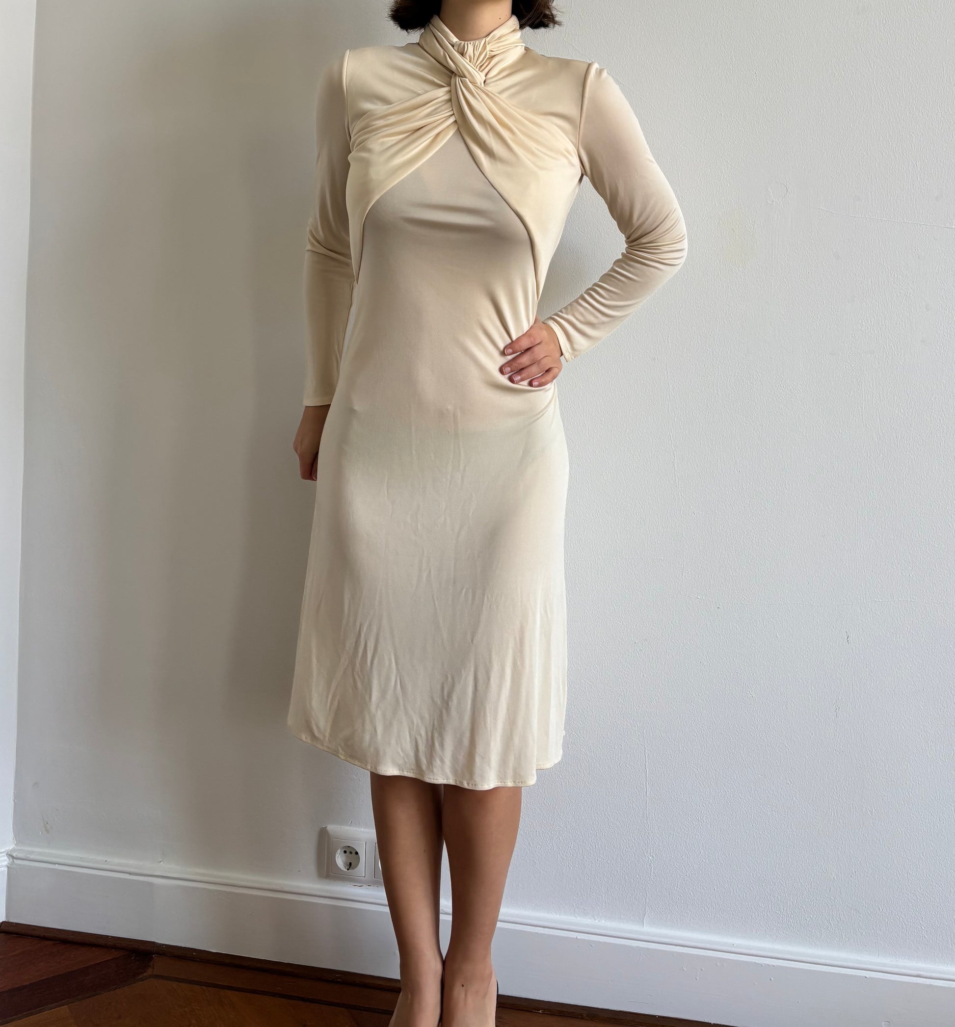 Insane FW2000 beige Versace dress. Seen in the campaign of that year.