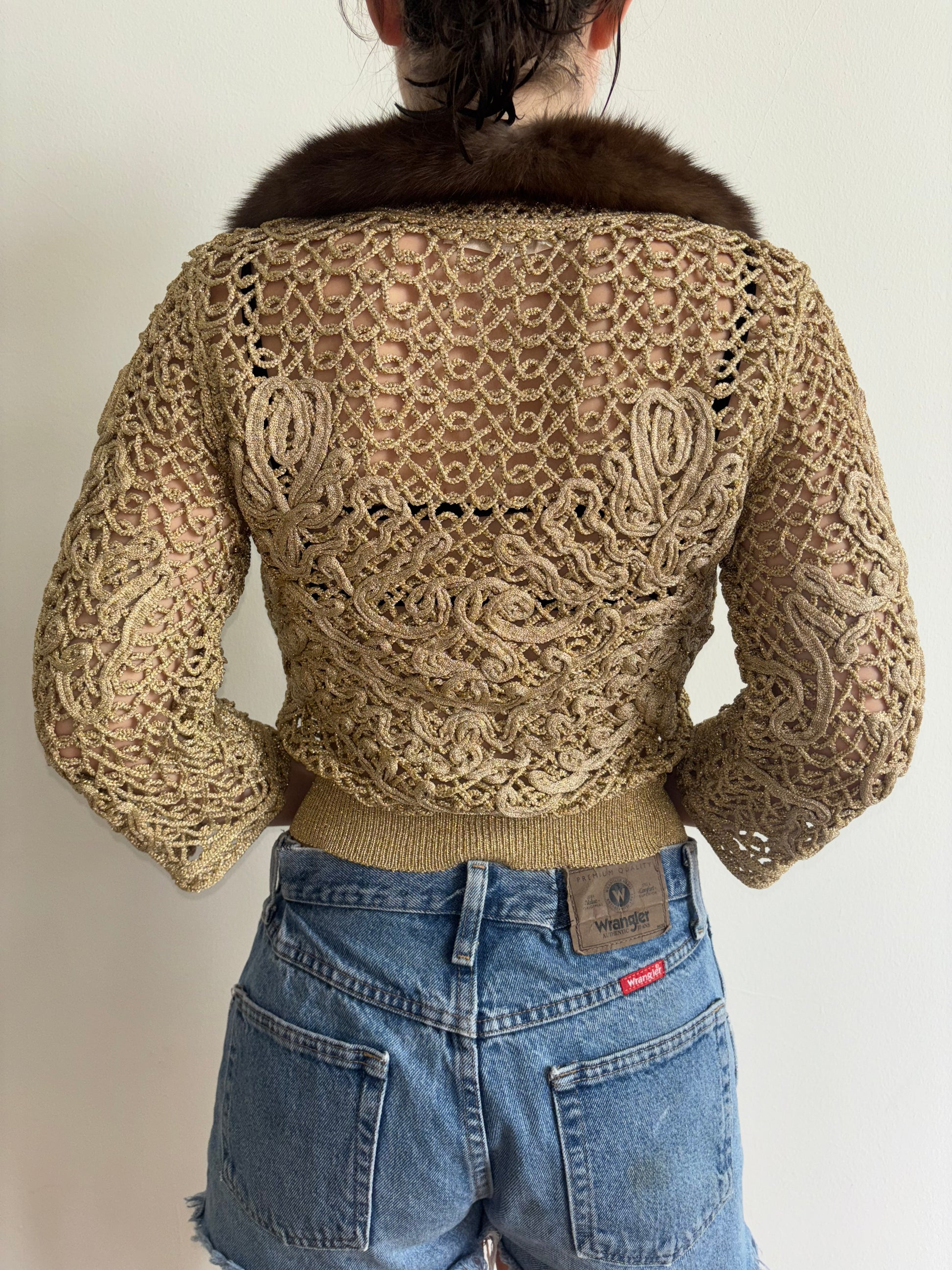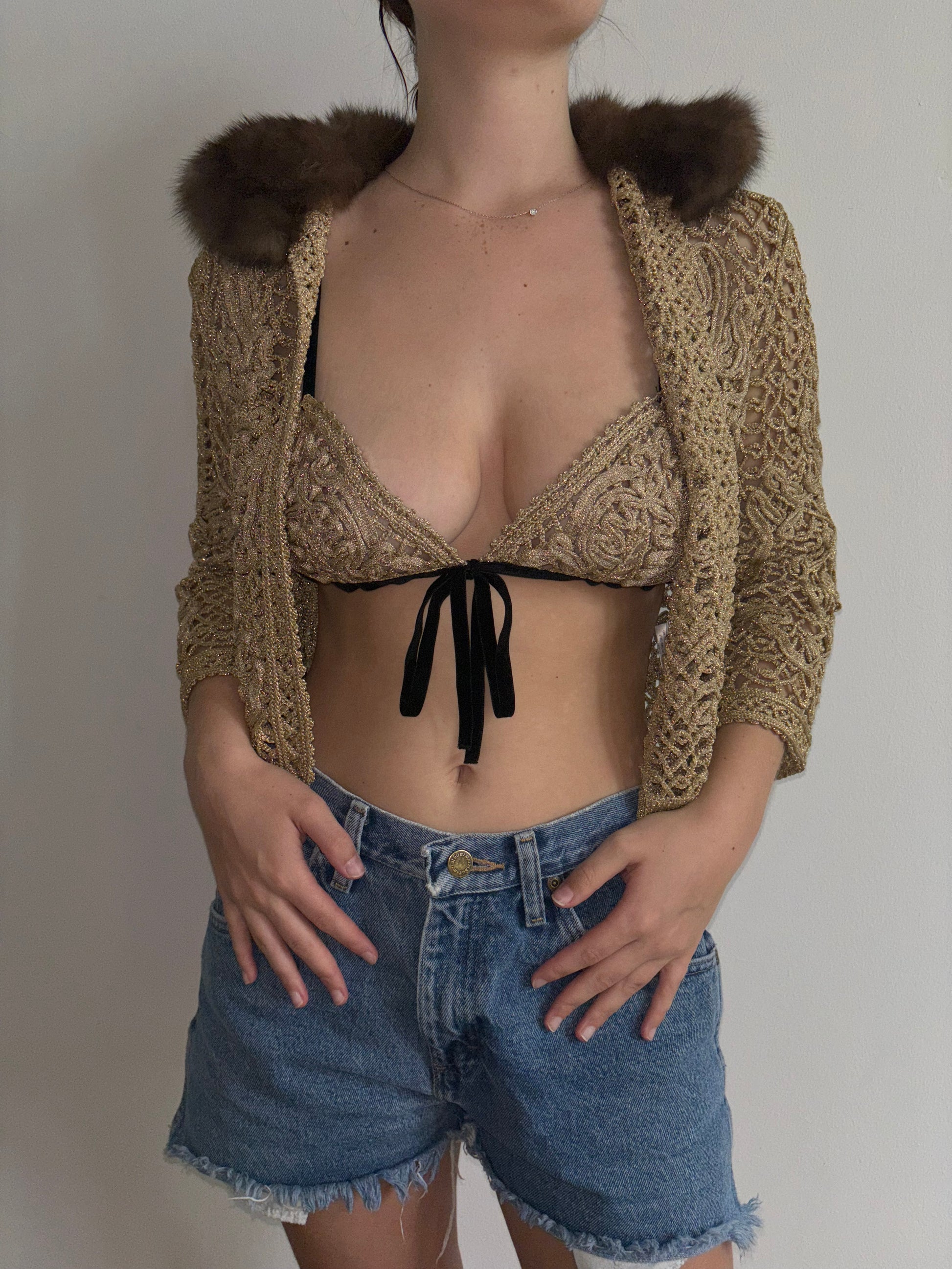 FW2004 Valentino gold runway bra and sweater set