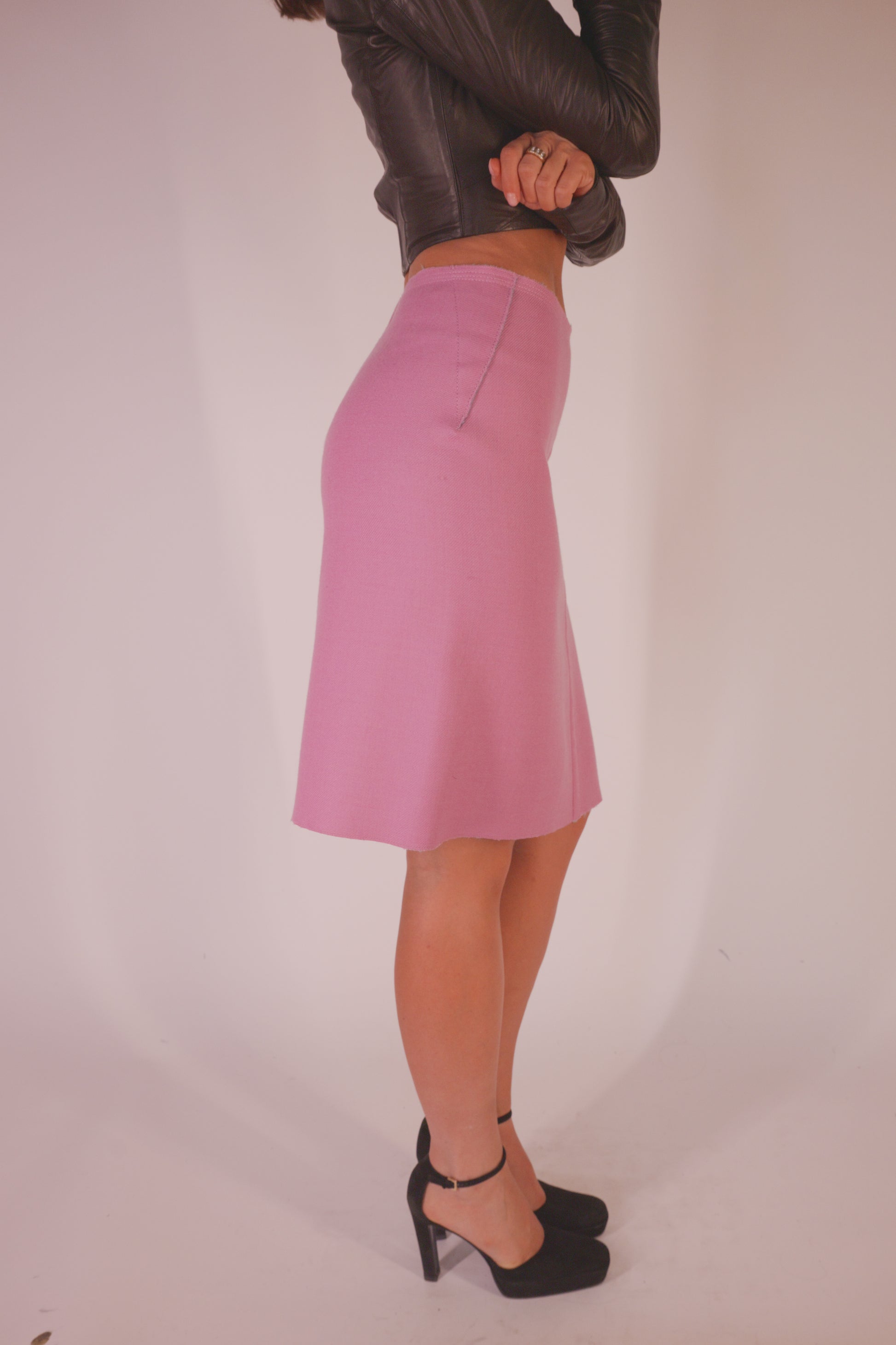 Prada FW 2003 Pink High Waisted Midi Skirt