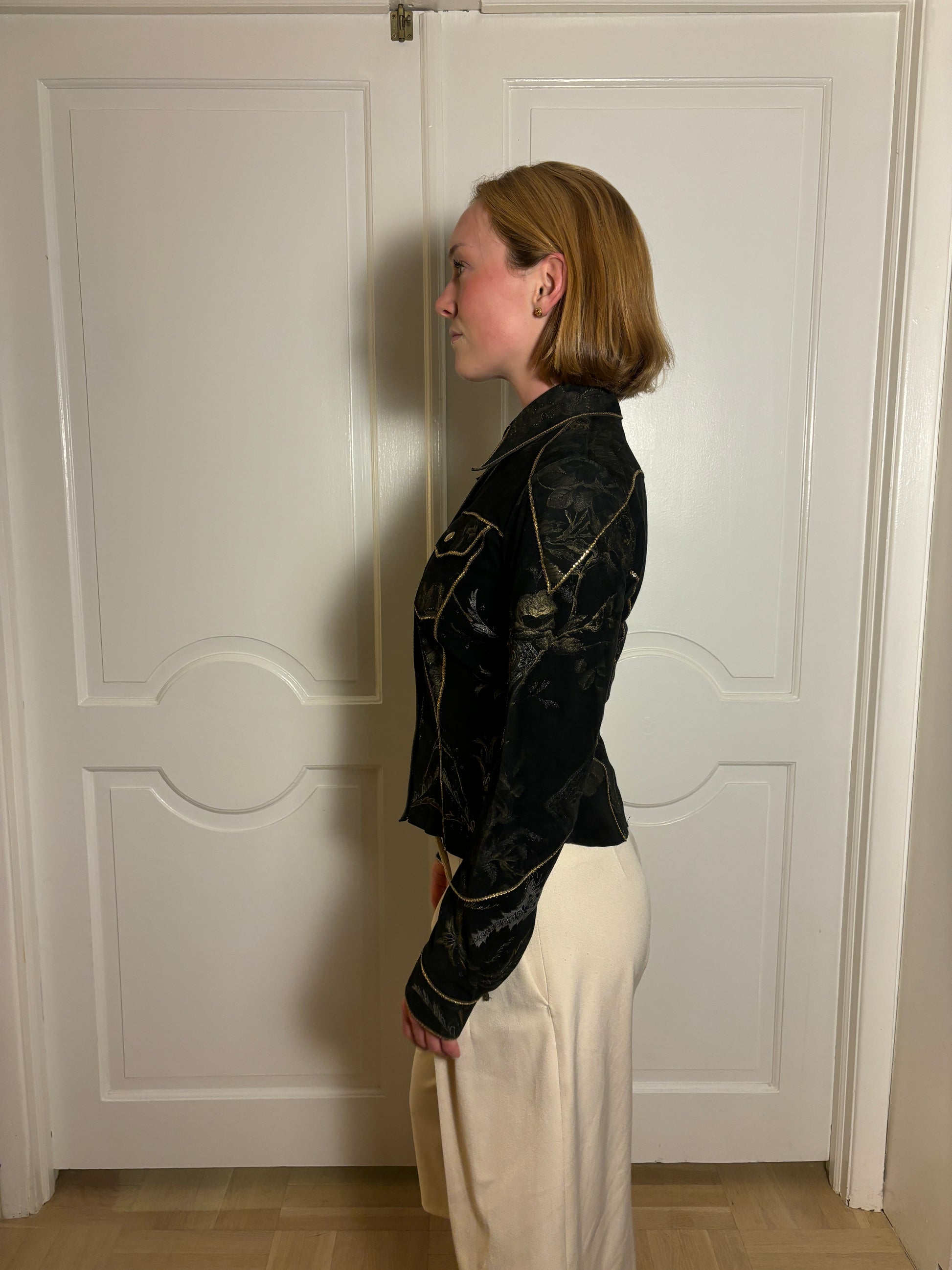 Roberto Cavalli Western Suede Black & Gold Sequin Embroidered Button-Up Shirt