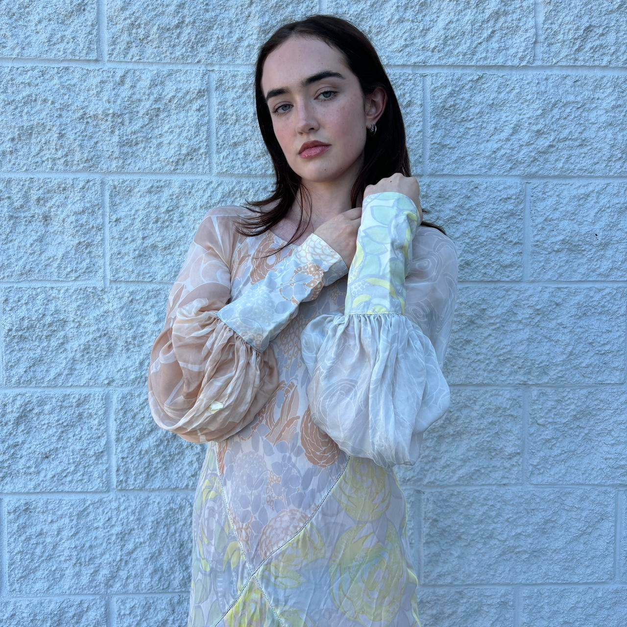 New with tags silk, Roberto Cavalli, long sleeve mini dress with buttoned sleeves