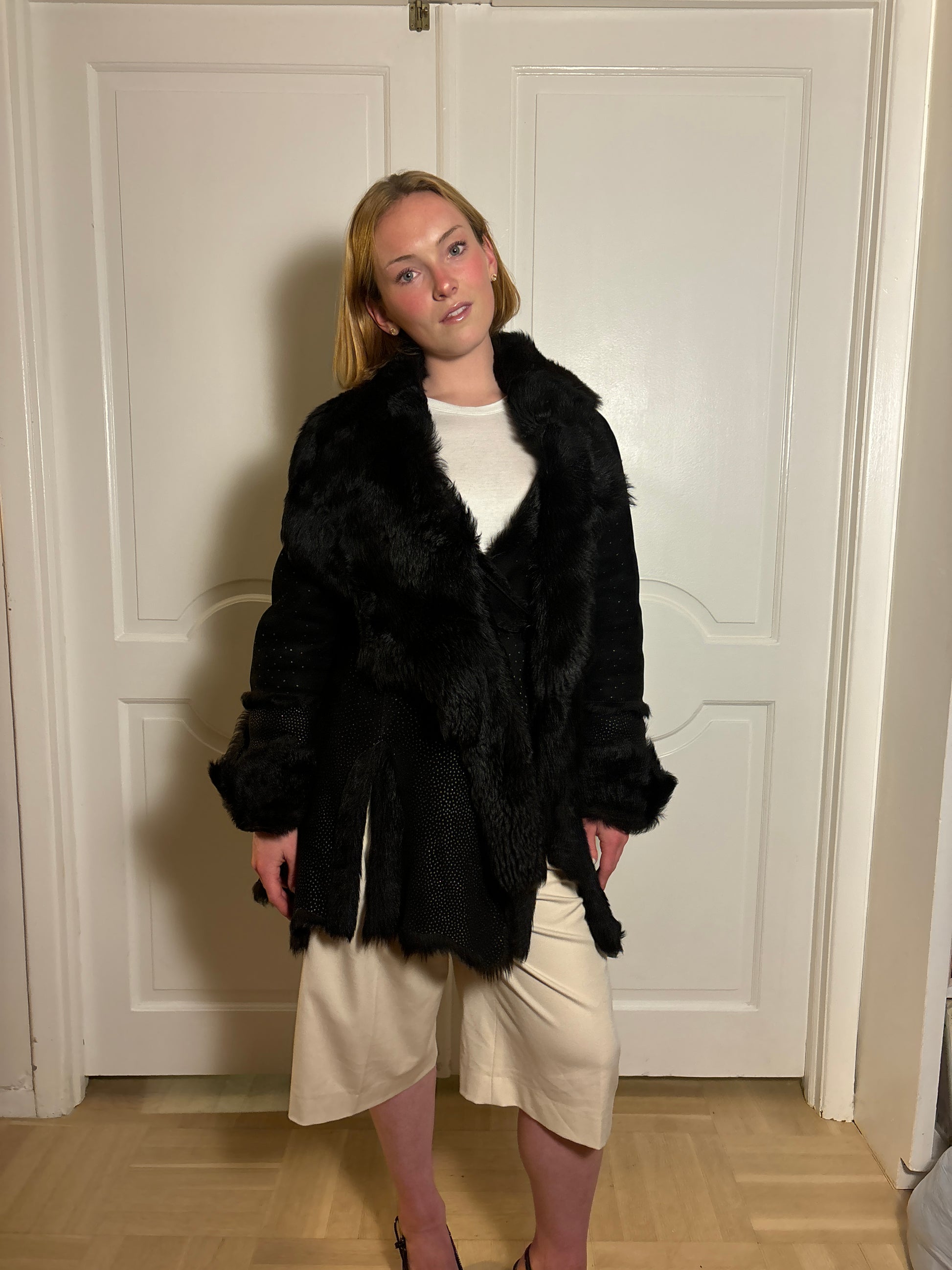 FW 1997 Roberto Cavalli Suede & Fur Coat with Gold Polka Dots