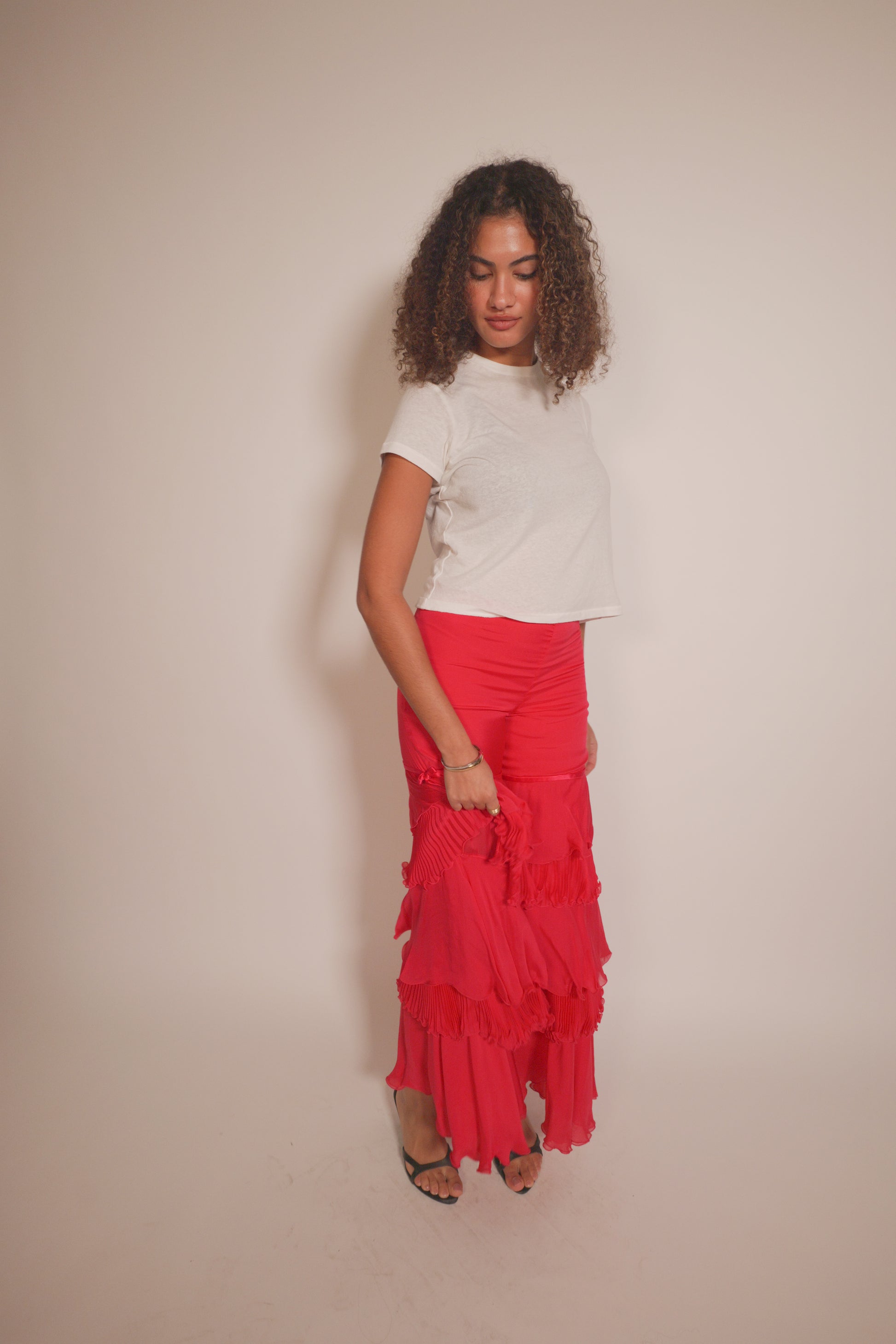 The perfect pants for the holidays! The most insane layered silk red Valentino runway pants!
