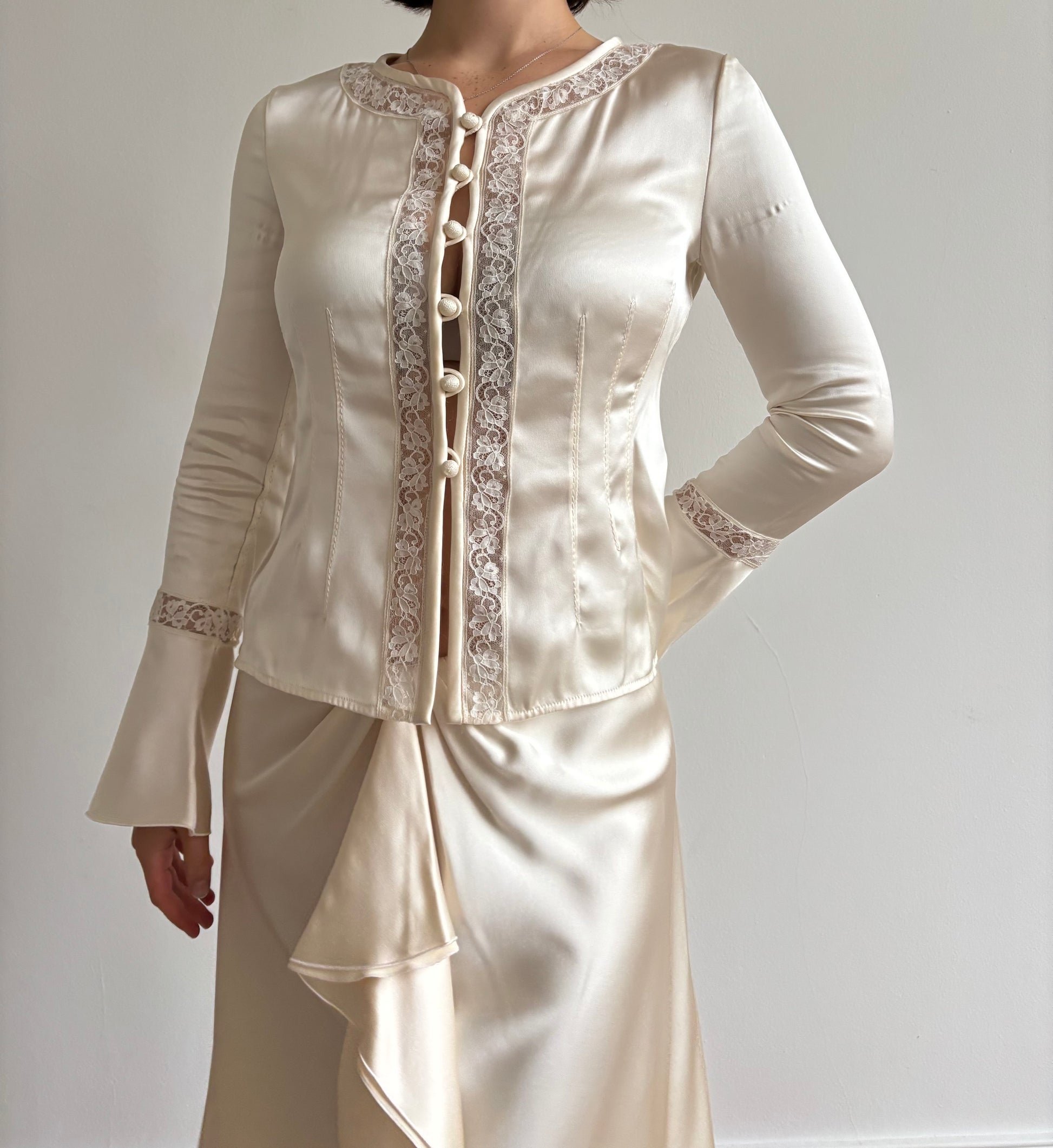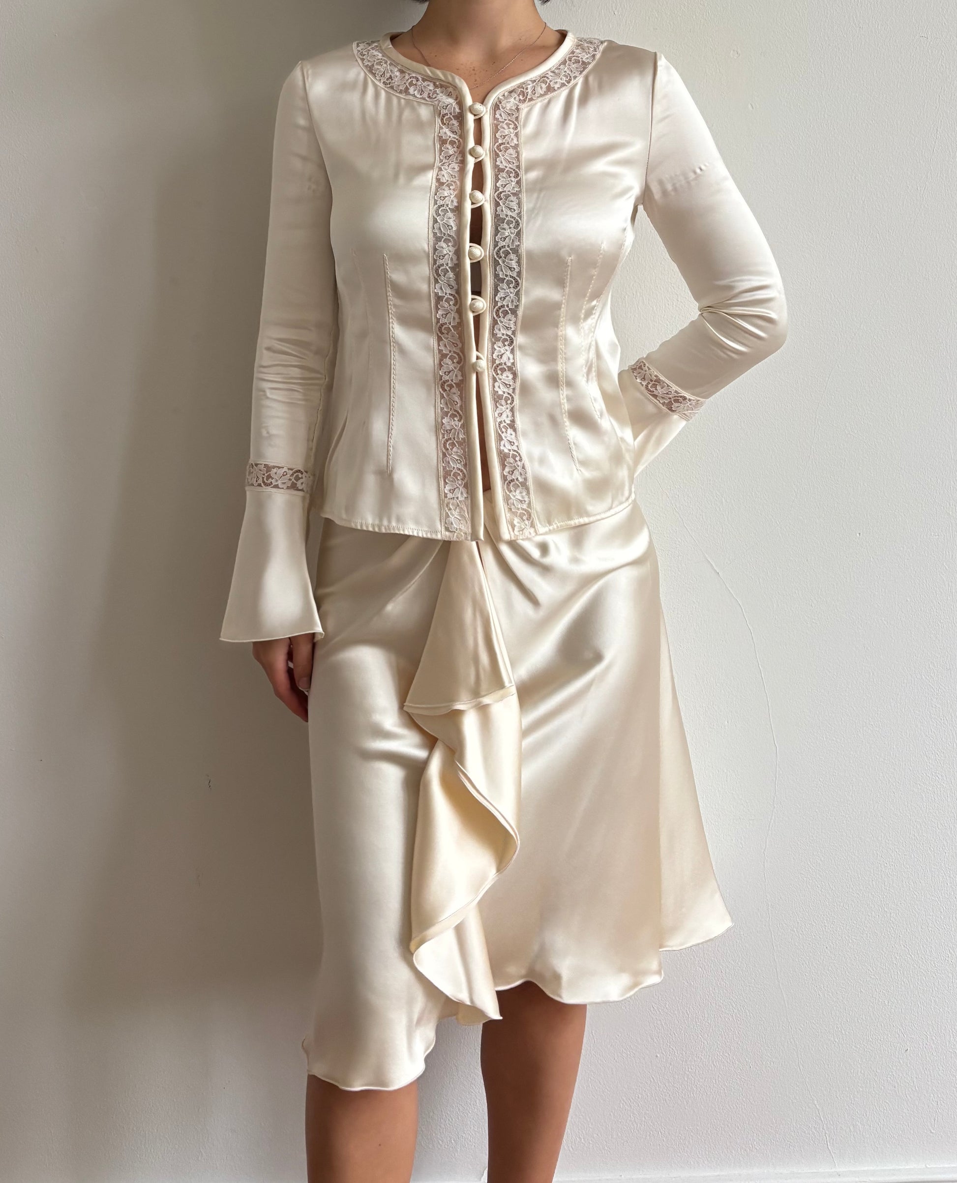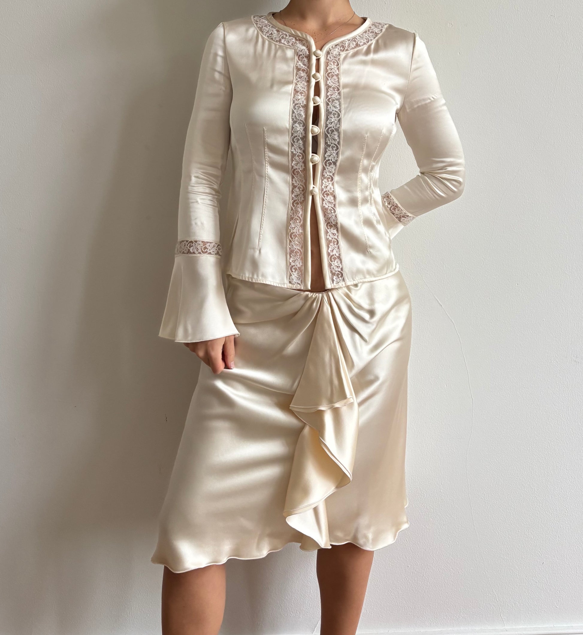 The most stunning SS2006 Valentino silk white and lace runway set. Excellent vintage condition: sone natural wear to the fabric due to its age and a tiny mark on the back of the top. But overall in excellent condition.