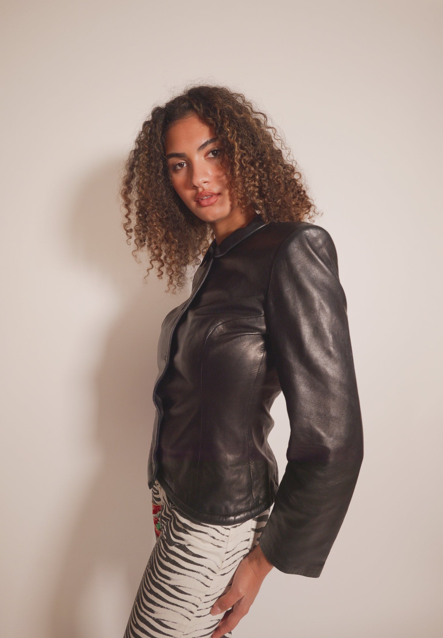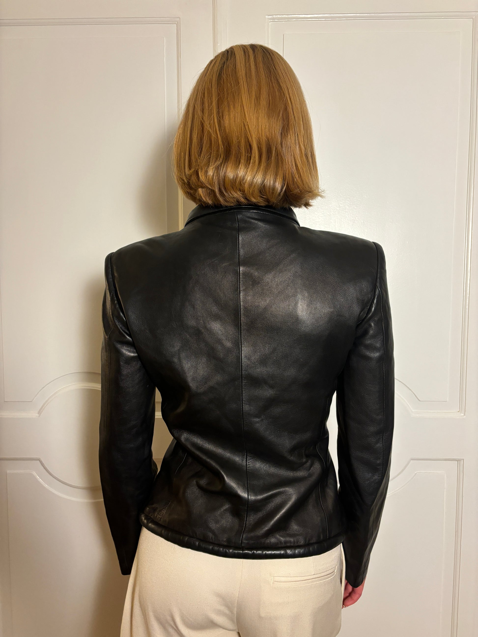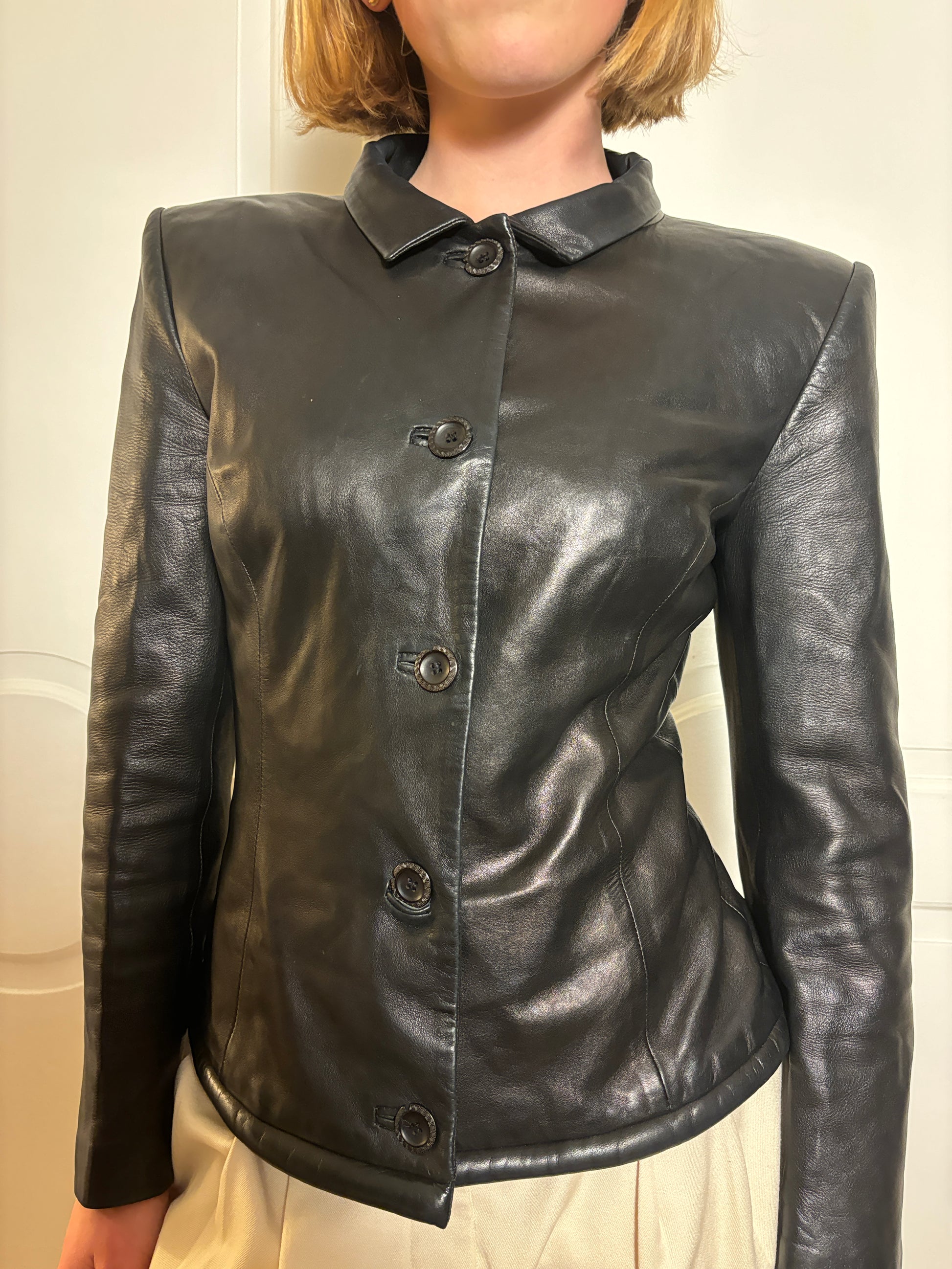 most insane Versace leather jacket with shoulder pads and details along the trim